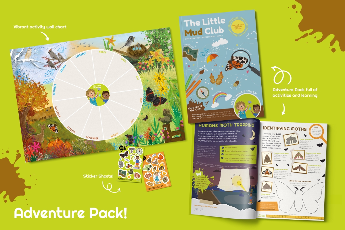 The Little Mud Club is a monthly subscription pack for children aged 2 to 7. Each Little Mud Club 24 page A4 pack is crammed full of ideas that support development through play and adventure for children between the ages of 2-7 years. It includes 10 adventurous activities, something to grow, a short story and eco-friendly stickers