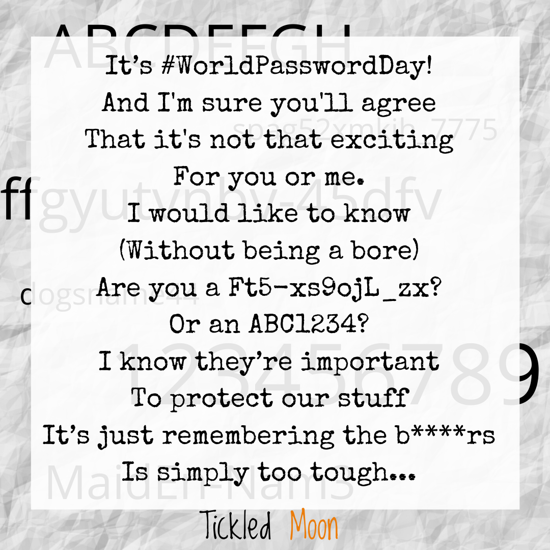 So now we come to peachy poetry for pondering passwords. Did you know that there was a World Password Day? Yep, on the 1st Thursday of every May you can ‘promote better password habits’ and ‘celebrate strong passwords’.
