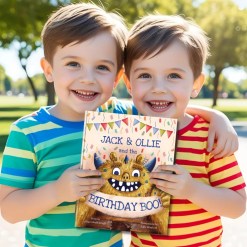 “The Birthday BOO for Twins”, which twins will you surprise with the Birthday BOO!? Our delightful, unique, heartfelt, keepsake personalised children’s birthday book, especially for twins, is suitable for ages 1-7.