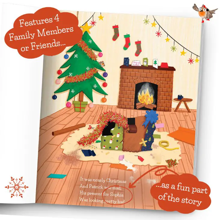A rhyming, personalised quirky Christmas story for children like no other! Plus, “The Christmas Wrapper”Β includes personalisations such as the child’s name on the cover, spine, and throughout the storyΒ AND features 4 family members/friends and a pet or favourite toy. Watch out too for an Extra-Special Guest Appearance (Ho Ho Who Do You Think It Might Be??!)
