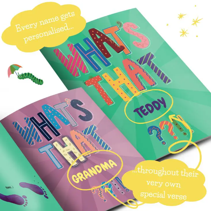 What’s That personalised gift book keeps children engaged from page to page. Moreover, its playful surprises and silly rhymes add to the fun.